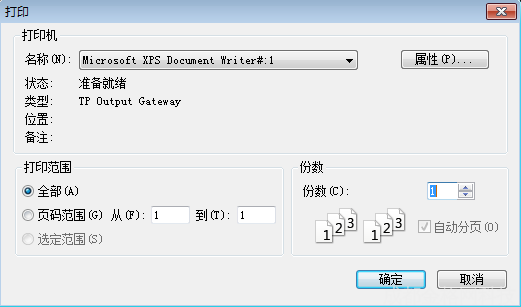 二、打印对话框,设置打印机、打印范围和份数。如图
