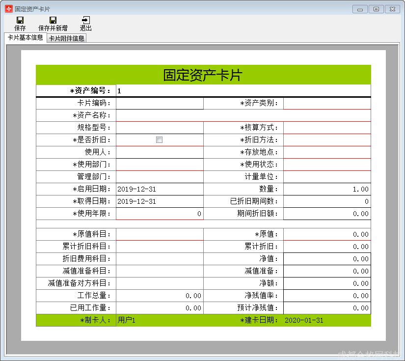 - 2.8.3.3 固定资产清单(科目)