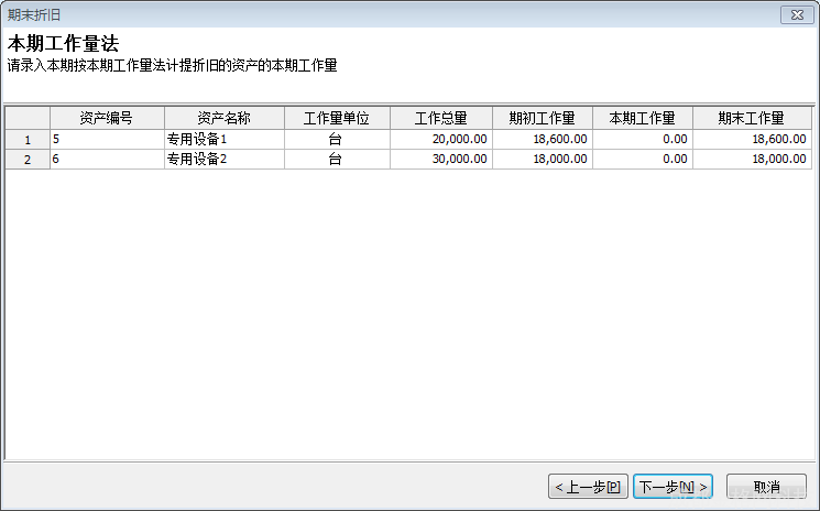 不含工作量法计提折旧的固定资产,则不调用本期工作量法界面。