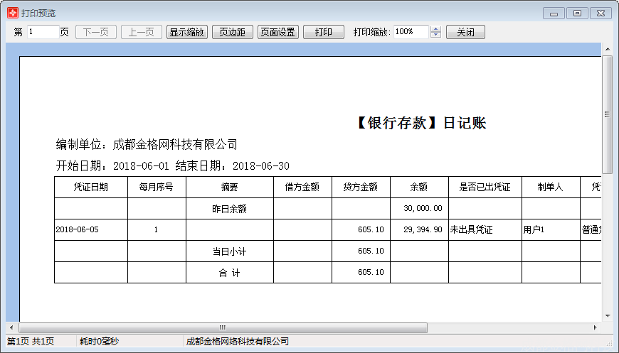 预览:点击【预览】,提供调整报表打印格式的功能,方便用户查看打印效果。如图