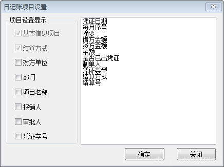 设置:点击【设置】,依据实际查看内容对日记账账簿展示内容进行显示设定。如图