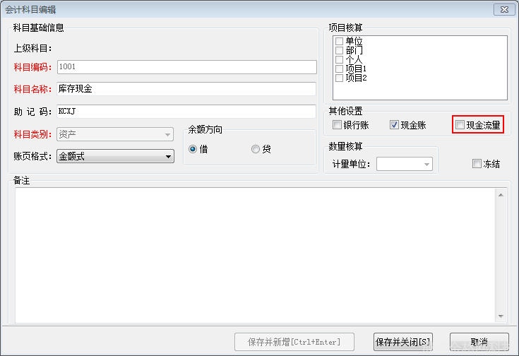 备注:定义现金流量属性的科目对应金额参与现金流量计算。