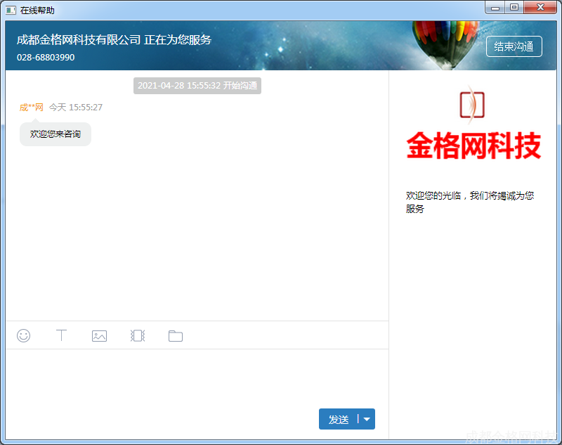 用户使用中遇到问题,点击在线帮助,通过网络实时咨询公司人员。如图
