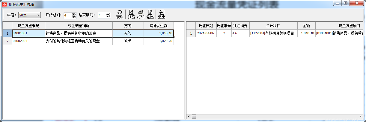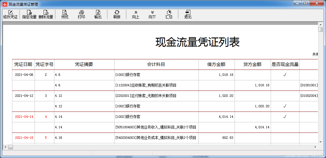 点击主界面菜单【现金流量】—【现金流量凭证管理】,进入现金流量凭证管理界面,点击汇总。如图