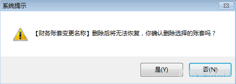 - 点击【是】,删除指定账套。