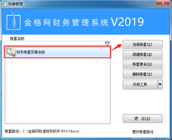 一、账套管理界面,选中账套文件,点击【选择账套】。如图