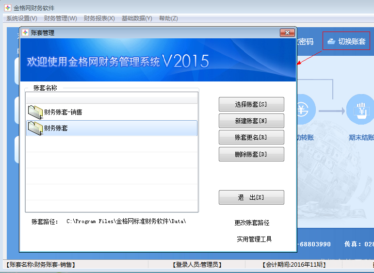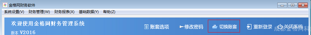 一、软件主界面点击右上选项设置按钮【切换账套】。如图