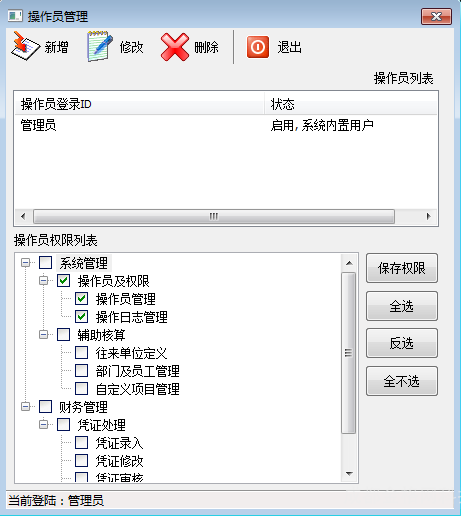 - 点击【保存】,操作员增加成功。