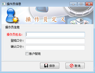 - 账户禁用:勾选后,操作员不允许登录。