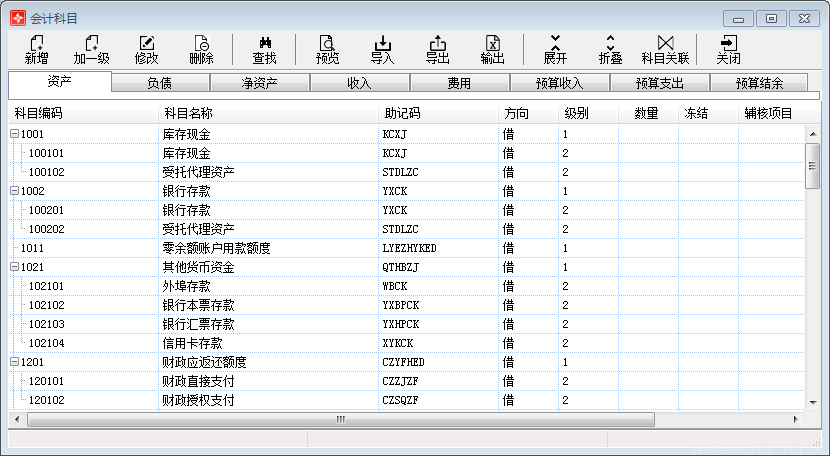 根据财会[2017]25号发文【关于印发《政府会计制度——行政事业单位会计科目和报表》的通知】,预置政府会计制度科目体系。如图