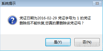 删除:对已录入尚未复核的当期凭证进行删除,并给予提示。如图