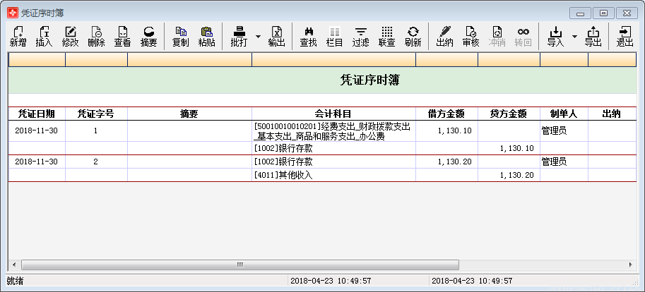 - 序时簿打印:提供输出账户格式至打印机,方便用户以纸质文档形式使用。