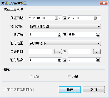 - 取消:汇总条件设置无效,返回凭证汇总界面。
