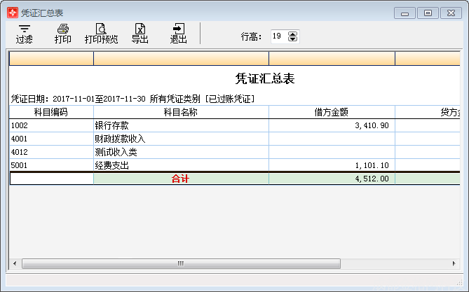 凭证汇总表的行高值仅对凭证汇总表有效。