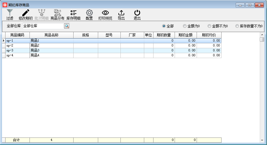 期初库存商品