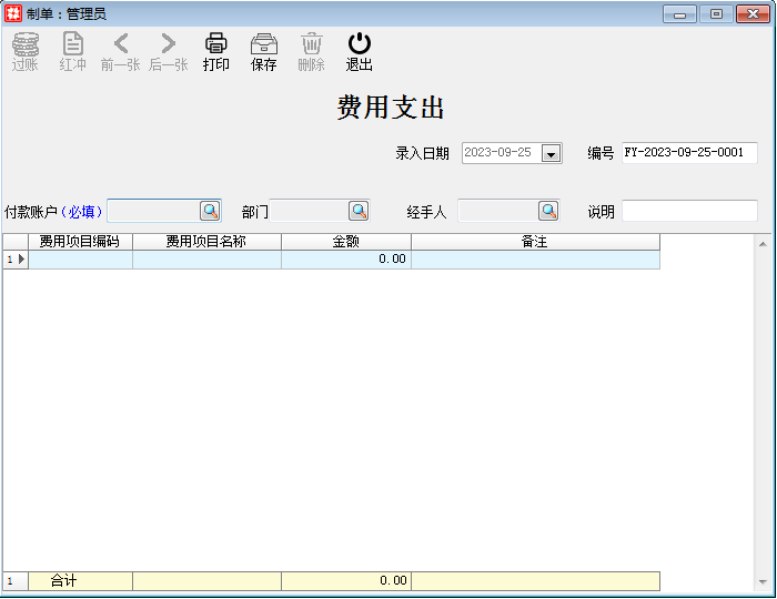 过账:费用支出单如果保存了,但是没有过账的话,是不会记入现金银行账的。费用支出单在未过账的情况下制单人和有价格查看权限的操作员可以修改和删除单据。但是过账过后,就会记入现金银行账。单据不可再修改。