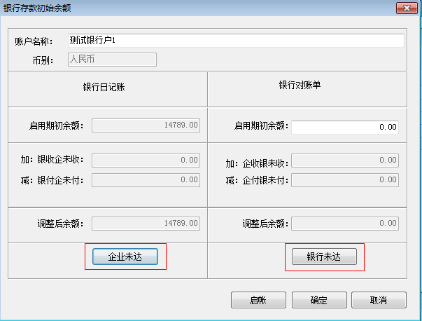 计算公式:银行日记账调整后余额=启用期初余额+银收企未收-银付企未付