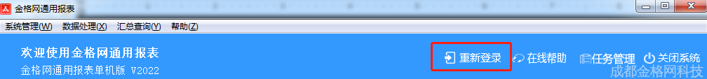 切换报表单位:点击【重新登录】,在选择报表单位界面重新指定报表单位并登入。如图